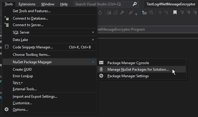 اول کتابخونه log4net رو از طریق این منو برای هر پروژهای که میخوای توش لاگ کنی نصب کن: