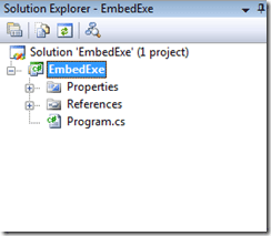 مرحله آخر اینه که حالا که embedd کردیم چطوری ازش استفاده کنیم. فرمت استفاده از فایل به این صورت میشه: ApplicationNameSpace.ResourceName در مثال ما میشه : EmbedExe.Regedt32.exe